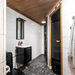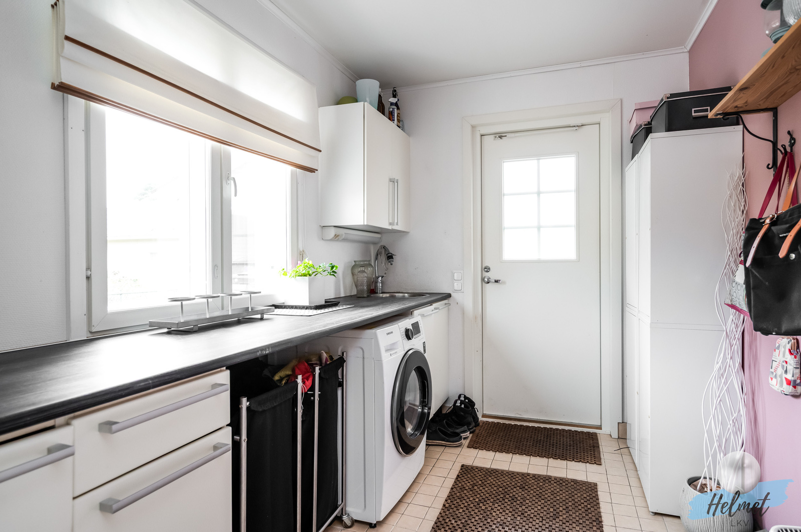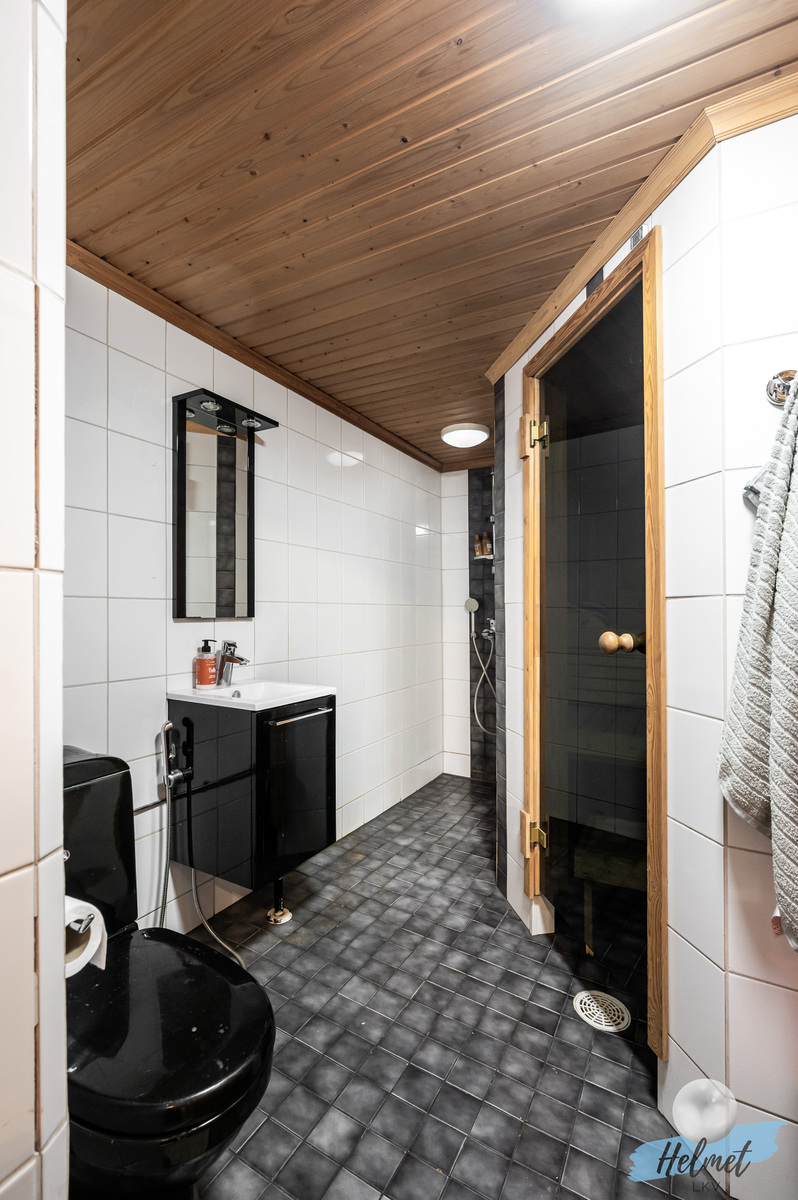 Kellarista löytyy viihtyisä viihdehuone. Sieltä on oma portaikko ulos. Lisäksi aula, pesuhuone, sauna ja tekninen tila.