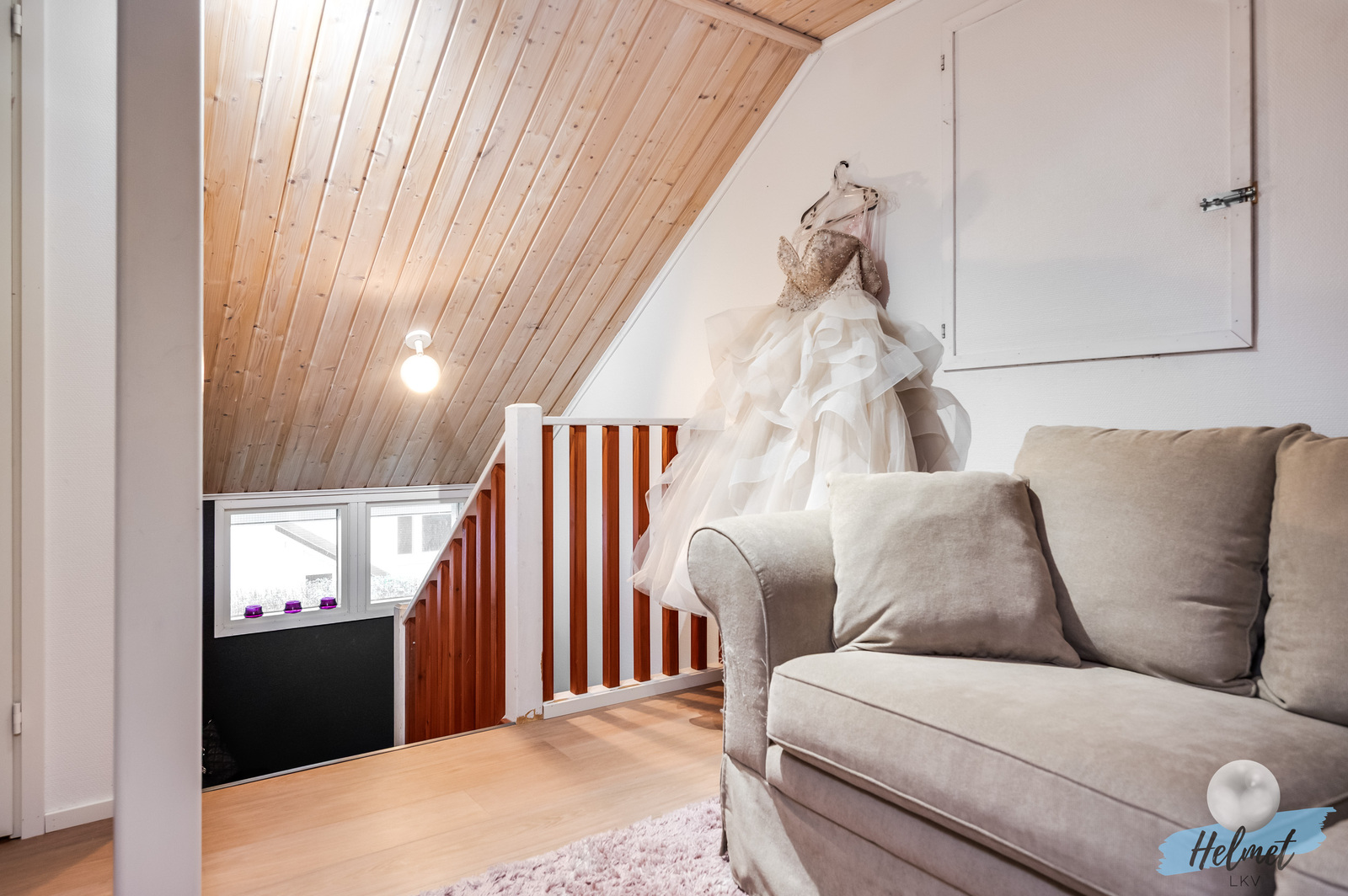 Talon vanhan osan puoli on kolmitasoinen ja laajennusosa kaksitasoinen. Alakerrassa on keittiö, olohuone, 2 makuuhuonetta, kodinhoitohuone ja wc. Yläkerrassa iso huone, aula ja vaatehuone. Mahdollisuus tehdä laajennus vanhan osan puolelle.
